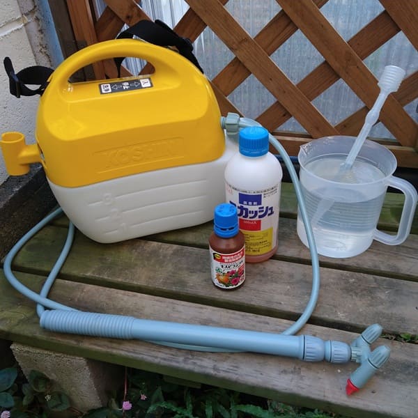 バラを中心に、月に2回の薬剤ローテーション散布を行っています