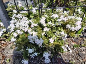 白いプリムラジュリアンはモリモリ咲いています