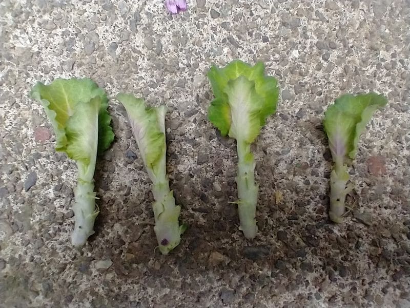 右から2番目の葉ボタンは少し前に切り戻していたので、小さなわき目が伸びてきています