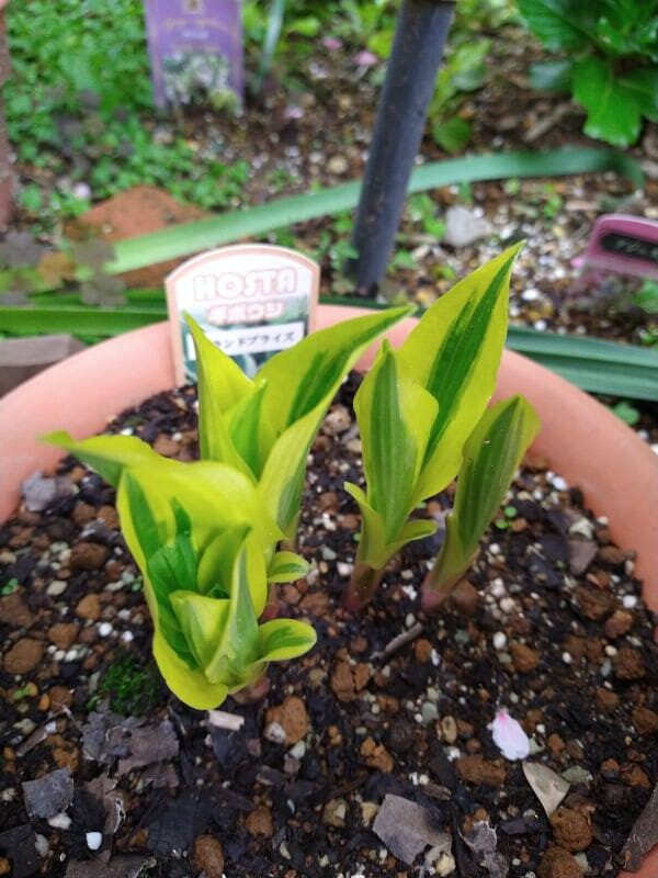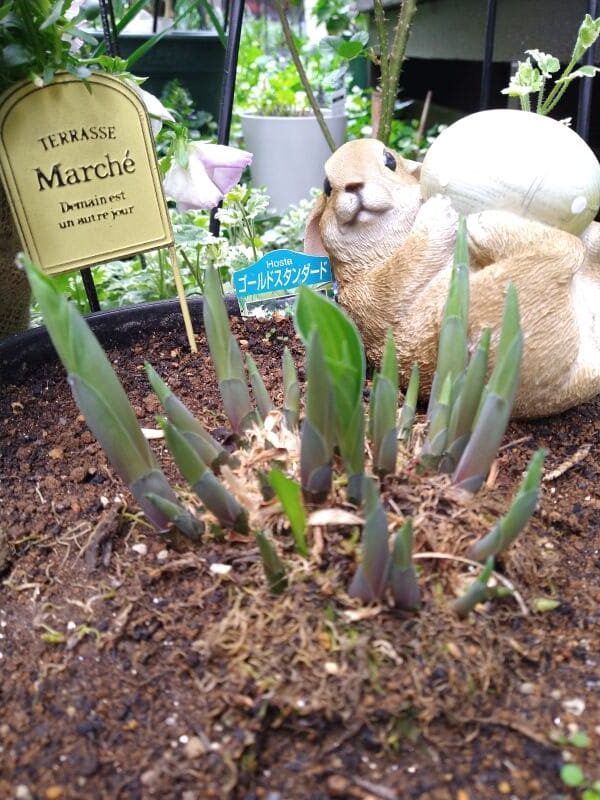 いよいよホスタの新芽が出てきました